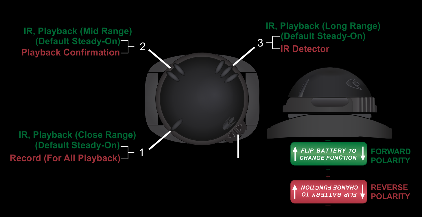 Sophisticated miniature covert Beacon. Outputs Near-IR Wavelength in a variety of intensities. Features programmable flashing patterns.