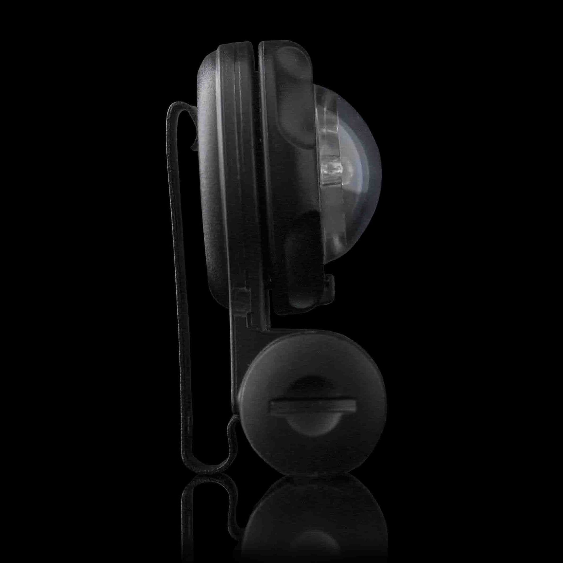 To prevent accidental activation of visible light, this model features a one-way bezel that must cycle through two IR functions before switching to overt (green) light. Additionally, the overt light mode has a built-in delay, allowing users to scroll past it without activating it.