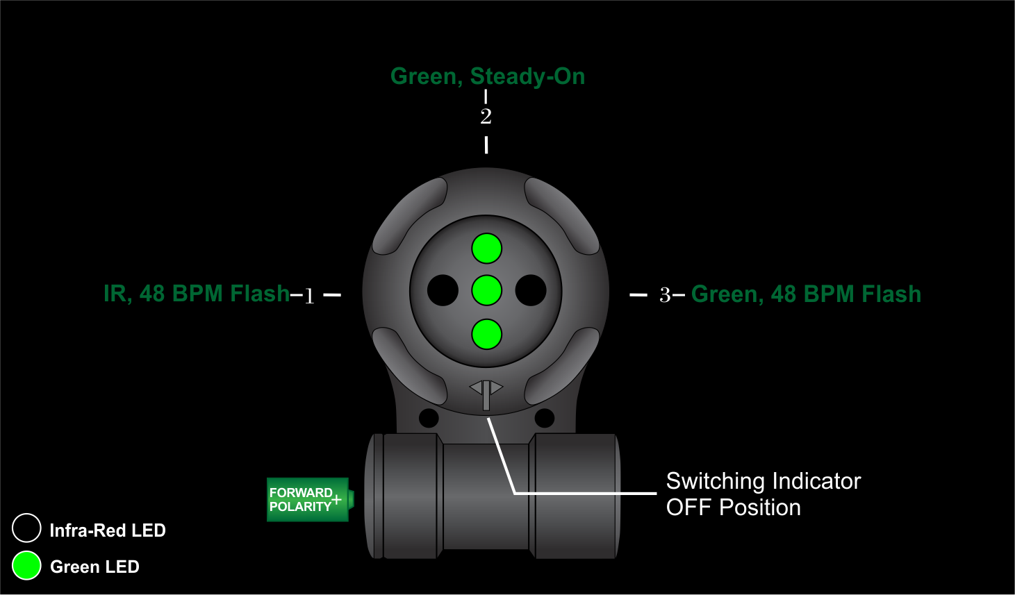 Designed for maximum visibility, this model features both IR and Green light modes. It includes: